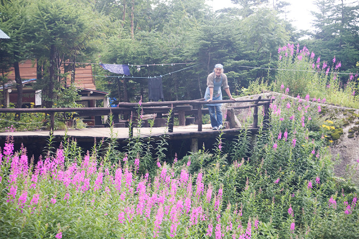 昭和56年(1981年)、台風による鉄砲水が鳳凰小屋を襲いました。台風が過ぎ去った後、本館の玄関には大木が突き刺さっていたと言います。スタッフは避難しており、間一髪でした。それらを片付け、針葉樹の若木を植え直し、現在のような庭とテラスができ上がりました。