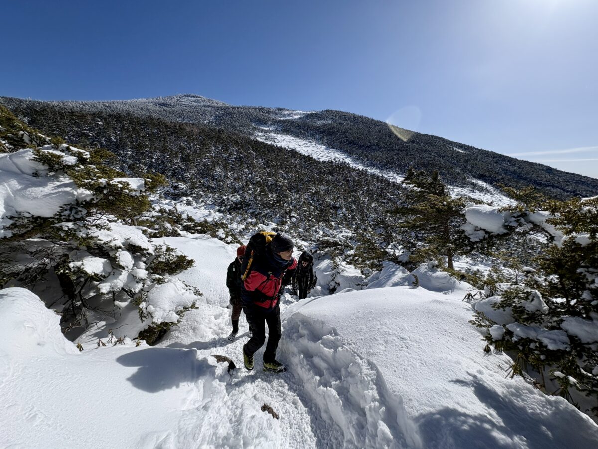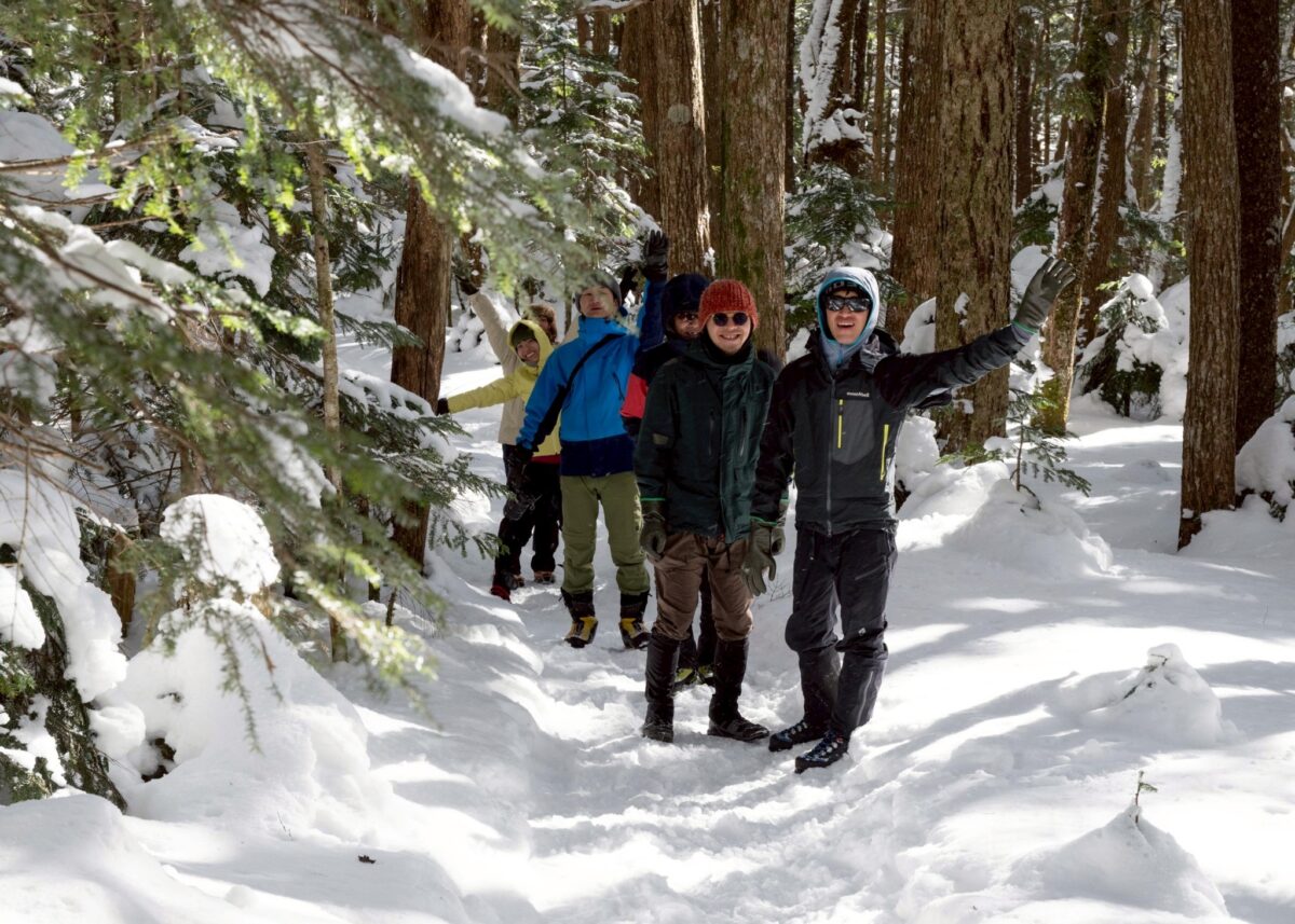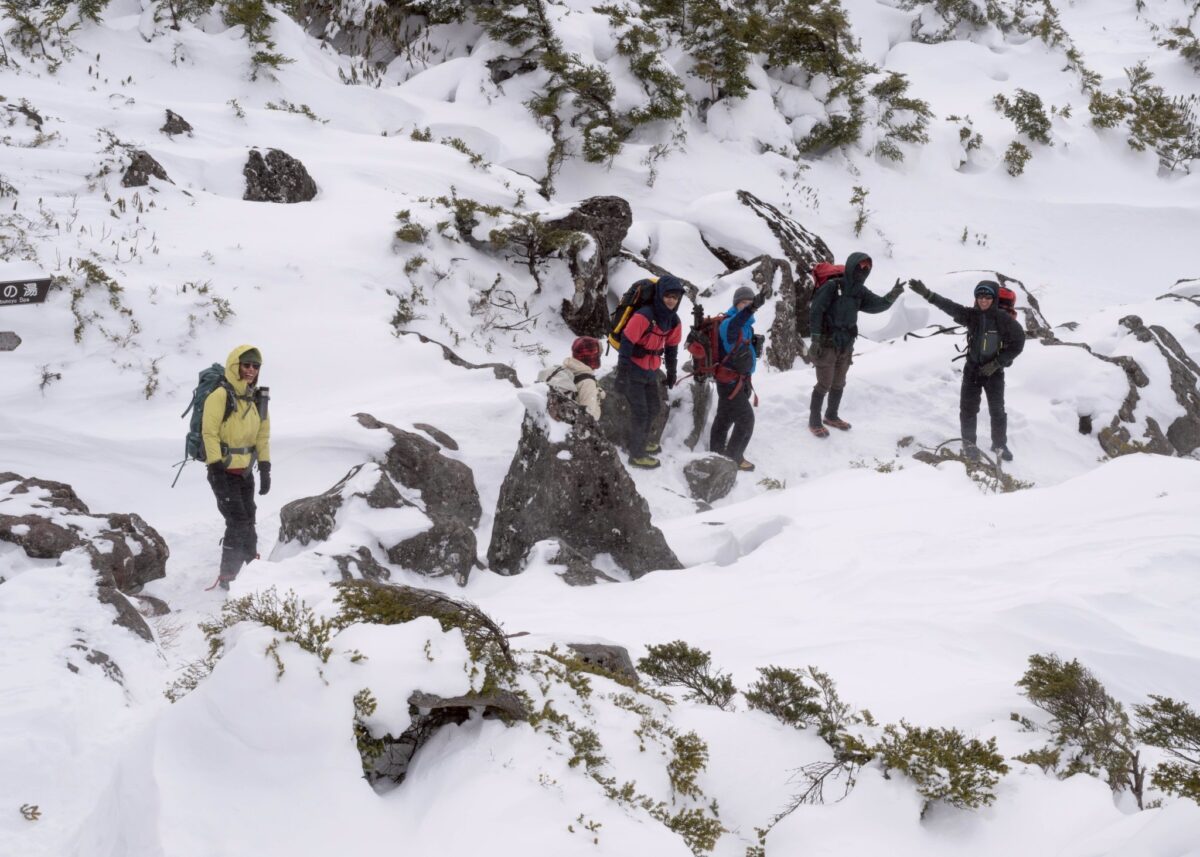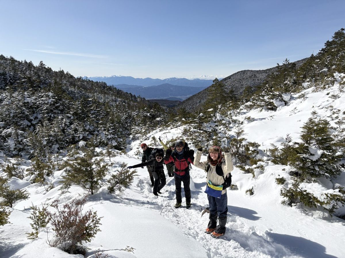 みんな、いい顔をしてます。雪山が初めての参加者もいましたが、景色に背中を押されつつ順調に歩いて来れました。