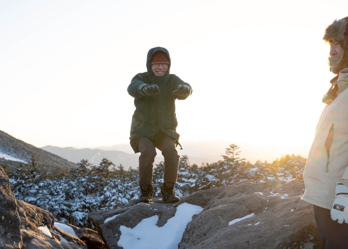 気温はマイナス10℃。岩陰に隠れたり身体を動かしたりと、みんな思い思いの寒さ対策をして待つこと15分。
