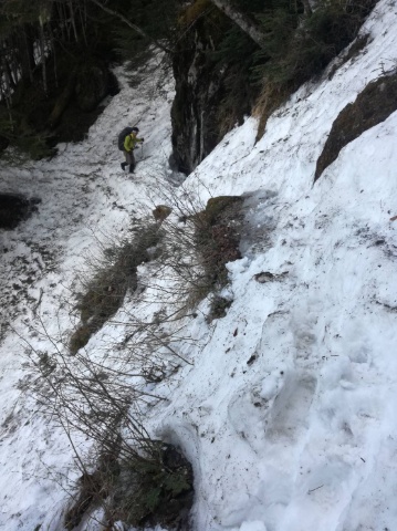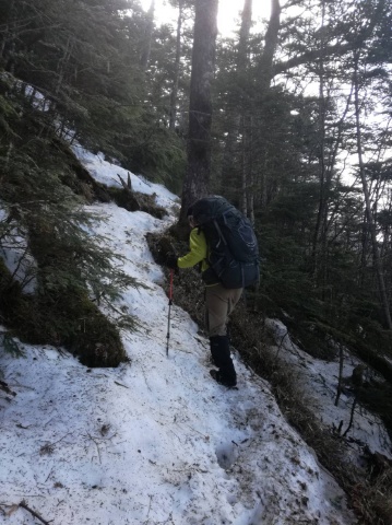 気温が高いため、踏み抜くことしばしば。今日は膝やももまで頻繁にはまりました。この時期は仕方ありません。気合いで乗り越えましょう。