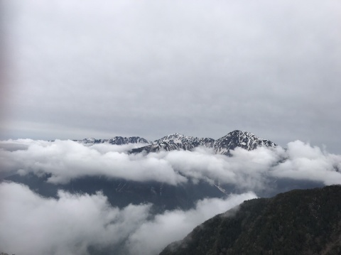 ちょっと時間遅いので、雲が湧いていますが、白峰三山。
