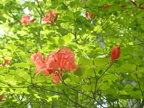 ヤマツツジ、トウゴクミツバツツジが見頃です。