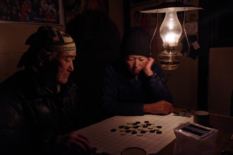 青年小屋のコタツが掘りゴタツじゃないと文句を言ってます。
