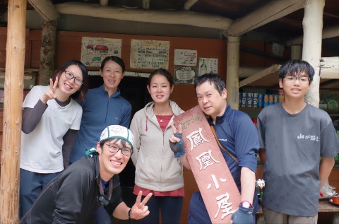 看板を持ってるシミズさんは、今年2回目のご登場。もともと地元山梨の方なんですが、スタッフちかさんにたまたま九州で会ったのがきっかけで、鳳凰小屋を訪ねて来てくださるようになりました。