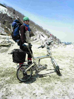 2011/05/06 13:44 次は 地蔵ヶ岳で出会ったおじさま。 折り畳み自転車と一緒に登ってきたそうです! しかもテントまで担いで。初めて出会いました。 山登りのスタイルって自由で個性がそれぞれあって面白いですね♪ まいちゃん