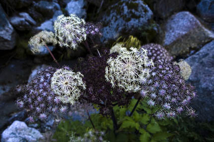 日暮れにパッとなのか、ボ~っとなのか、淡く咲いてるシシウド、辺りには霜の涙が押し寄せて来てるみたいで、老け行く草木が広がる鳳凰。心なしか水の薫りが淡く消えていくみたい。沢からは豊かな水音が聴こえるんだけどな、草木が蓄える水には声があったのかもね、今は静かに待つだけ。見た目には賑やかさが広がるけど、やっぱり静かに静かに、パッと咲くシシウド、やっぱりこの季節が好きだな…