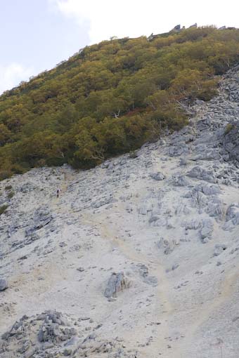 この写真、観音岳への登り、遠くお姉さんが歩いてるな~なんて眺めて、目指す地蔵岳へ歩くわけです。 連日の若いお客様に、山はどうなってんだ? てな具合にびっくりする毎日、このお姉さんも、単独でよく歩いてるな~と思ったほどです、これから紅葉、東京から一番近く、高い山の紅葉が楽しめる、ここ鳳凰小屋はそう考えてますので、是非!遊びに来て下さいね。