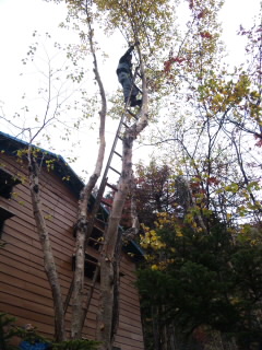 今日は小屋の周りのダケカンバやナナカマドの枝打ちをしました。 実際は写真で見るより遥かに高いのです。