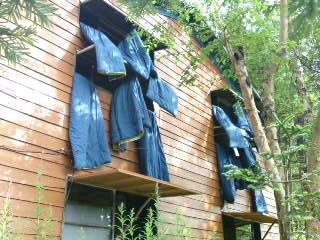 いぶり出される寝具さん、干してるんだけど、ひどい干し方だね。すでに真っ白なガスの世界に囲まれて、早々に撤退…