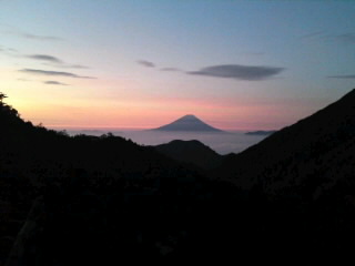秋らしい色づきを魅せる富士山、小屋から五分でみりので、朝食を準備する前にちょっくらと