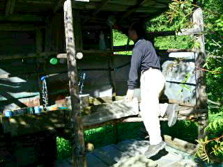 今回、先生が特に熱心に採取してた場所が、僕らが洗い物をする、水場の建物で、よじ登って採取してました。珍しいカミキリ虫が沢山とれたみたいです。そして、少年のような笑顔で、あれこそが御神木だと言ってました。