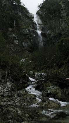 両サイドからなんて ちなみに、登山道からの分岐で、滝まで5分の表示がありますが、もっとかかる感じがしました。両サイドからの流れをながめるには、ガレ場をのぼらないとみれません。かなり登りずらいので、往復の時間と体力を十分に考慮して下さい。