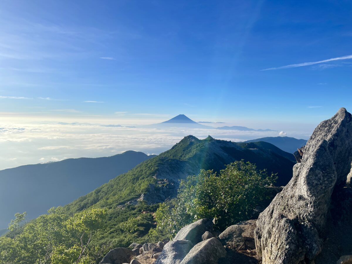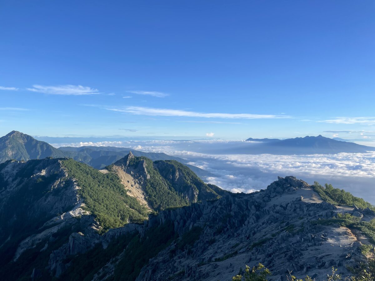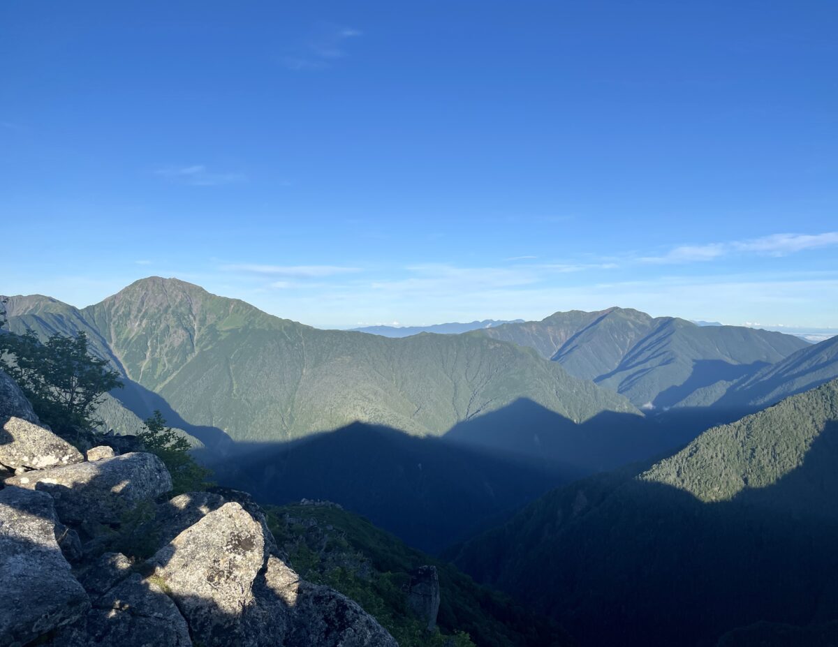 今朝の鳳凰三山です。季節外れの秋雨前線?が抜けてきれいな青空が広がるようになりました。