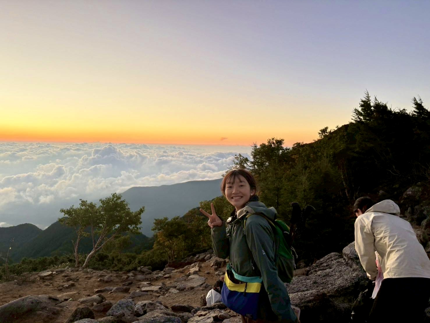 観音岳で朝日を拝むために、早朝3時半にスタッフの先輩のくまちゃんと小屋を出発。4時半頃に無事に観音岳に到着をして朝日を拝めました。