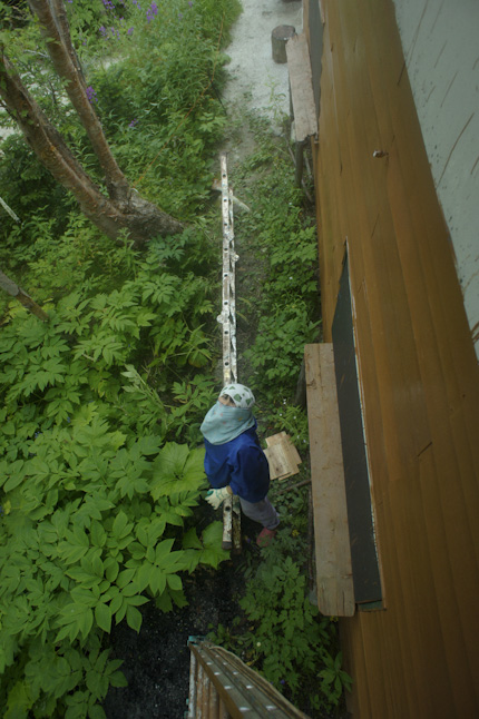 花さんも梯子にのぼっての下準備。来週の天候が気になります!
