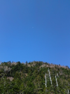 さっき小屋に到着、足が言うこと聞いてくれない道中、気温もいつの間にか真夏で…暑いのは苦手かも。 今日はウサギが独りぼっちで三日月と向かいあってる鳳凰小屋♪ オヤスミなさい。