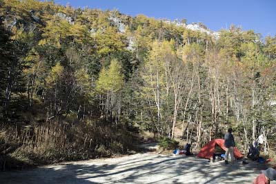そういえば、楽天のノムさんがんばってますね。ラジオで楽しい話題といえば、野球です。日本一を期待してます! 今日のテント場は貸し切り状態、カラマツ林の賑やかさに、タジタジ…
