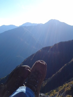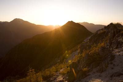 夕日かな… 今日の夕暮れ、体感温度はえらく寒かったな。フリースにセーターにゴアテックス、着こんでも完敗… 正月の鳳凰、考えたくないな。 稜線、ダケカンバは白骨化してるし、風に吹かれれば、自分もダケカンバと一緒に白骨化だな~なんて鼻水垂らしながらね。