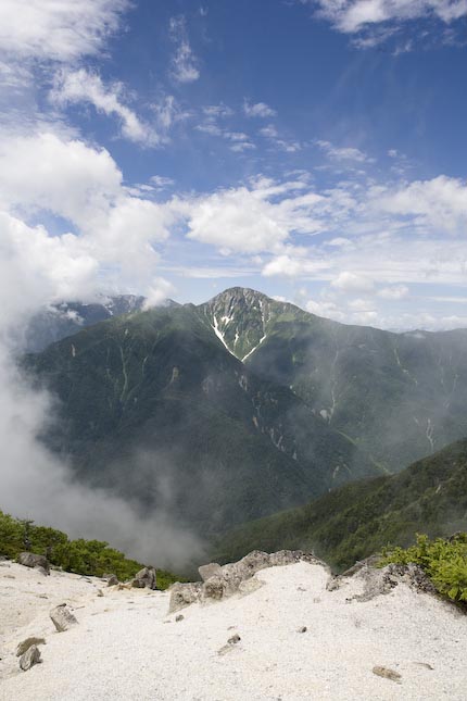 鳳凰の裏に広がる深い山々、限界口には北岳を始めとする白根トリオが鎮座してます。そういえば、ここ鳳凰は標高のトップ5は全て眺められるんじゃないでしょうか。穂高連峰も美しいですよね~