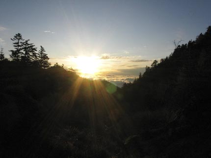 鳳凰と日の出、初めての体験。いつも鳳凰のどっかでしかみたことないんで。軍艦島みたいな鳳凰三山、どこから眺めても目立ちますよね~