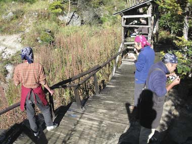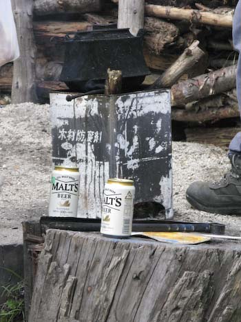 裏庭からの「カラマツと富士」 ここに露天風呂でもあればね~ 富士は着々と冬支度を済ませてますね。今年は温かい気が、鳳凰小屋の水場は例年だと氷柱だらけなんですが、まだ全然。温暖化なんですかね?去年は様々な植物を凍らせて遊んでました。沢の氷でウィスキーを飲んだりね~