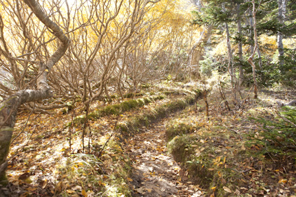 宝石箱をひっくり返したような登山道(笑) 正直、小屋に帰らず何日もカメラとこの道に住んでやりたいぐらいです!人に会わないし、葉っぱは疎らで陽光たっぷり、こんなに見所満載な季節に登山者無し…皆様は何処へ行ってしまわれたのでしょう…山の紅葉は標高2000mぐらいまでが個人的には好きかもしれないです。カオ...