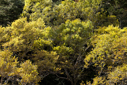 位置関係をお復習。右下にポッチリ、森の中に佇むのが我が家である鳳凰小屋。毎年、この場所に登って、紅葉の全体図を把握してるんです。