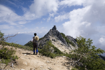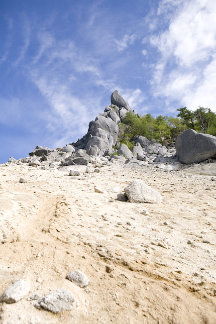 連休前に鳳凰三山の紹介。 三山の一番南に位置する薬師岳。稜線に小屋があり立地条件が最高なんですよ。屋久島の永田岳のような奇岩がピークに点在します。白砂が美しいのは鳳凰でナンバーワンかな~