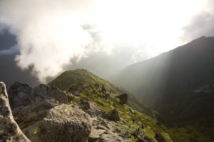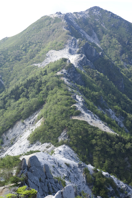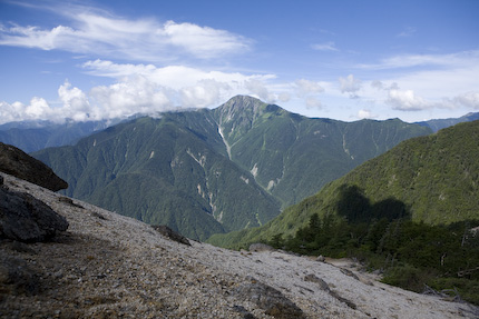 稜線を歩く三人組を赤抜沢ノ頭より眺める。意外とアップダウンあるんだな~って来た道を引き返す軟弱なblog君…そういえば、あまり三山を歩かないよな~観音岳は朝焼け眺めに、地蔵岳には昼間、時間に制限があるからか、年に何回も三山を歩かない事に気づく一日でした。
