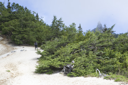 生い茂る稜線。 白砂の上を行く山人。 ガスるオベリスク。 今はこんな鳳凰…