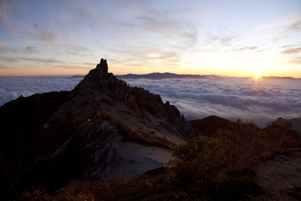 標高2840m 鳳凰三山で一番の高さを誇る観音岳。360度の展望はここ観音岳の一番の魅力でしょう。見えすぎてすみません!そんな感じです。この時期の朝日スポットはここで決まりです!