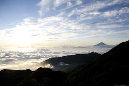地蔵岳より富士を眺める。美しい朝でした。明日からの連休、どうでしょうか?小屋は30人程の予約でがら空きみたいです。やはり悪いのですかね。そんな日に出会いがあるもんなんですがね。