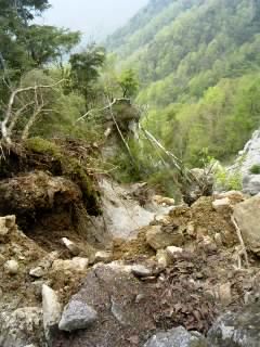 一週間前より更に崩壊しています。他にも牛首の階段も整備しましたが気をつけて通行してください。