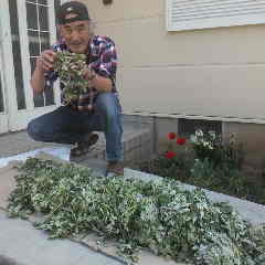 今日は暑い。蓬を摘む、草餅を作ります。小豆を煮て家のは美味しいですよ。残ったヨモギは茹でてから小分けにして冷凍します。 細田倖市