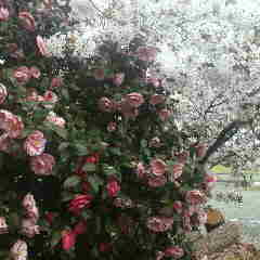 我が家の山桜系の桜と椿。今が盛り。 細田倖市