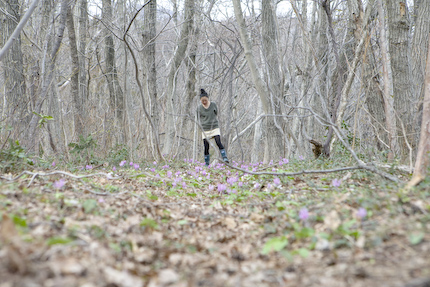 まだ若い桂の林です。地表には植物の芽吹きは少ない、ヒトリシズカやスミレの仲間が咲いているくらいです。木々の芽吹きが綺麗です。 細田倖市