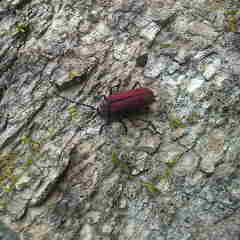 日本各地、北海道から九州まで広く分布しているカミキリです体長2センチメートル位です、カミキリの仲間としては大きな部類です。美麗な虫です、伐採木に普通に見られるので探し見てはいかがですか。 細田倖市