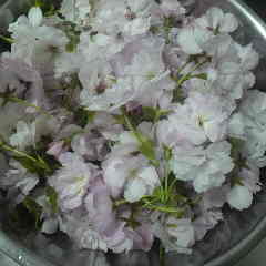 我が家の八重桜の花を漬け込みます。梅酢につけますこの方法ですといろあがりが良い。後は陰干しして保存するか梅酢に漬け込んだままでも良い様です。 細田倖市