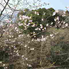 大山桜です。御座石鉱泉付近には多く今咲き初めで綺麗です。山桜のなかでは花が大きい、色もピンクで園芸種より爽やかな色合いで私は桜のなかでは一番好きです。 細田倖市