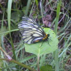 初夏に見られるウスバシロチョウです。優雅に揺ったりと飛び回ります。ケマンの仲間を食草にしています。 細田倖市