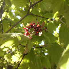 モミジの仲間では葉が大きく紅葉は真っ赤になり見応えがあるモミジです。花にはプロペラが付いていて種が実り葉が落ちる頃風にのりプロペラで遠く迄飛んで分布を広げます。花も良く見ると可愛く綺麗です。 モミジの花言葉は調和、美しい変化、約束、大切な思い出などです。 細田倖市