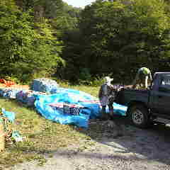 暑いなかヘリでの荷揚げの荷造りです。いつもは荷揚げの準備しているとうるさいくらいエゾハルゼミが鳴いているのだが今日やっと鳴き声を聞いた、控えめに静かに少し鳴いただけでした。雨がすくないし朝夕が冷えるから今年は遅いのかな。松林がある里で鳴くハルゼミの鳴き声もまだ聞いていない、昨年はハルゼミとカジカガエ...