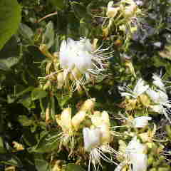 良く観察すると変わった綺麗な花です。子供達が蜜を吸ったりしたから吸葛とも、冬場でも葉を落とさずにいるから忍冬とも言われる。日当たりの良い場所に咲いている蔓性の植物です。薬用酒も作れる。花言葉は愛の絆、献身的な愛、友愛などです。 細田倖市