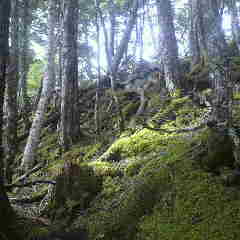 苔とと林の中を歩くのも癒されますね、こんな林の中に松茸が生えています。登山道をちょっと外れるとこんな風景が至る所にあるのが南アルプスの良い処でしょうか。 細田倖市