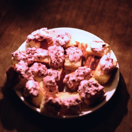 山の恵みをそのまま晩酌とともに頂けるというのは、なんとも贅沢なこと。コマガタケスグリという、山葡萄に似た実を砂糖とウィスキーで煮詰め、クリームチーズと和えたものをパンケーキにのせる。この想像しただけでヨダレが出そうなスイーツをプロデュースしたのは、山のパティシエ宇佐美氏。オーナーも納得の良味は「うま...