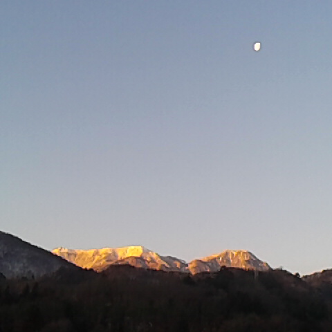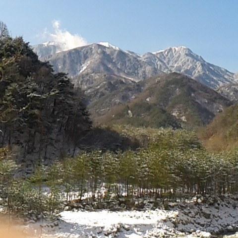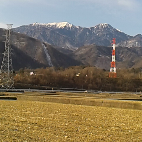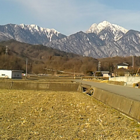 鳳凰三山が綺麗です。穏やかな天気で里からもよく見えています。週末にはたくさんの人達が登りました。積雪は例年より少ない見たいです。 細田倖市