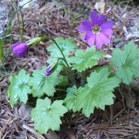 沢沿いの水が滴る様な岩場に咲きます。小屋の付近では今が見頃です。南アルプスの北部から八ヶ岳に生えるサクラソウの仲間の可憐な花です。 細田倖市