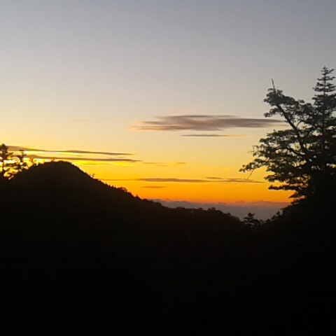 今朝の気温は7度。快晴です。朝焼けが綺麗です。小屋から御座石方面に五分位下ると富士山が綺麗に見えます。朝夕は素晴らしいので見ませんか。 細田倖市