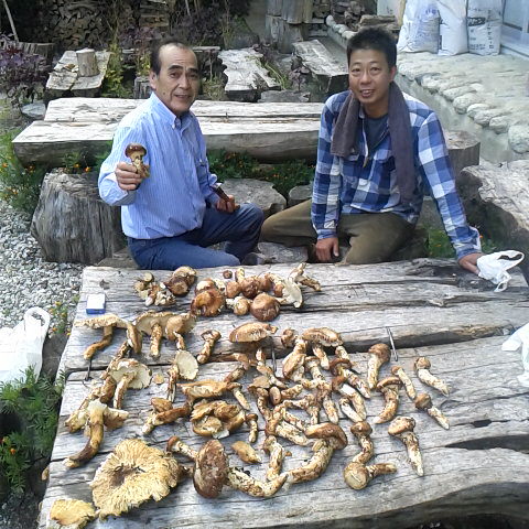 2人で70本の大収穫です。今年はどのポイントでもにょきにょきにょきにょきの松茸の集団です。10月上旬迄続きます。夜の炬燵での宴会で焼き松茸。暇な日はご期待下さい。 細田倖市