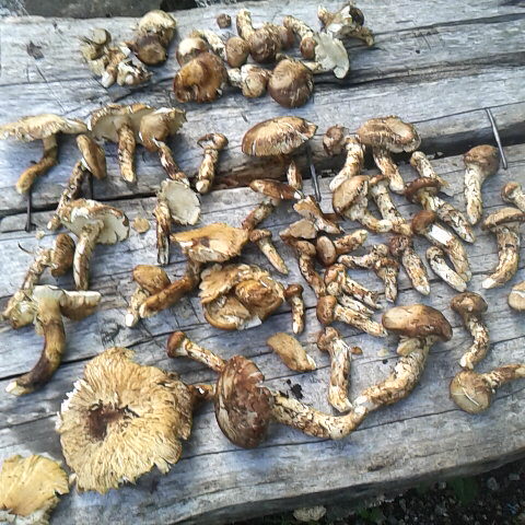 ここ最近は感覚が麻痺してマツタケをマヨネーズで和えるという、下界ではとてもやろうとは思わない調理で美味しくいただいている毎日でございます。 しかし昨日、写真を撮りに山に入ったらキノコはマツタケではないことを思い出しました。食用が多いとされるハナイグチは表面にとろみがあって、ナメタケのような感触をもっ...